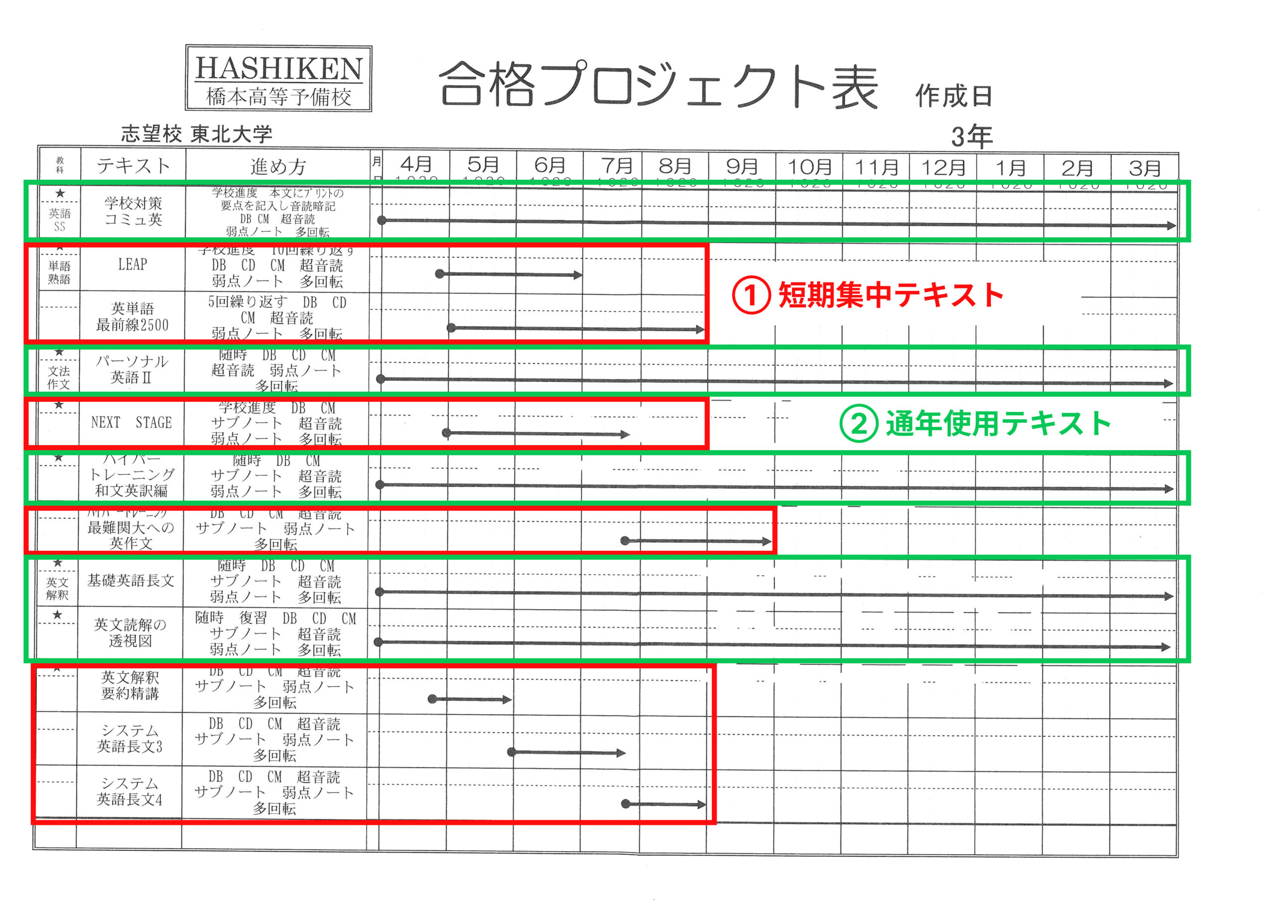 「合格プロジェクト表」は、他塾では作成不可能な、あなた専用のオーダーメイドカリキュラムです。